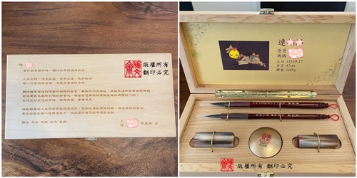 鐘鼎文它除了保有中國文字美之外,還另有防偽的功能,因為電腦刻印軟體裡沒有鐘鼎文!
